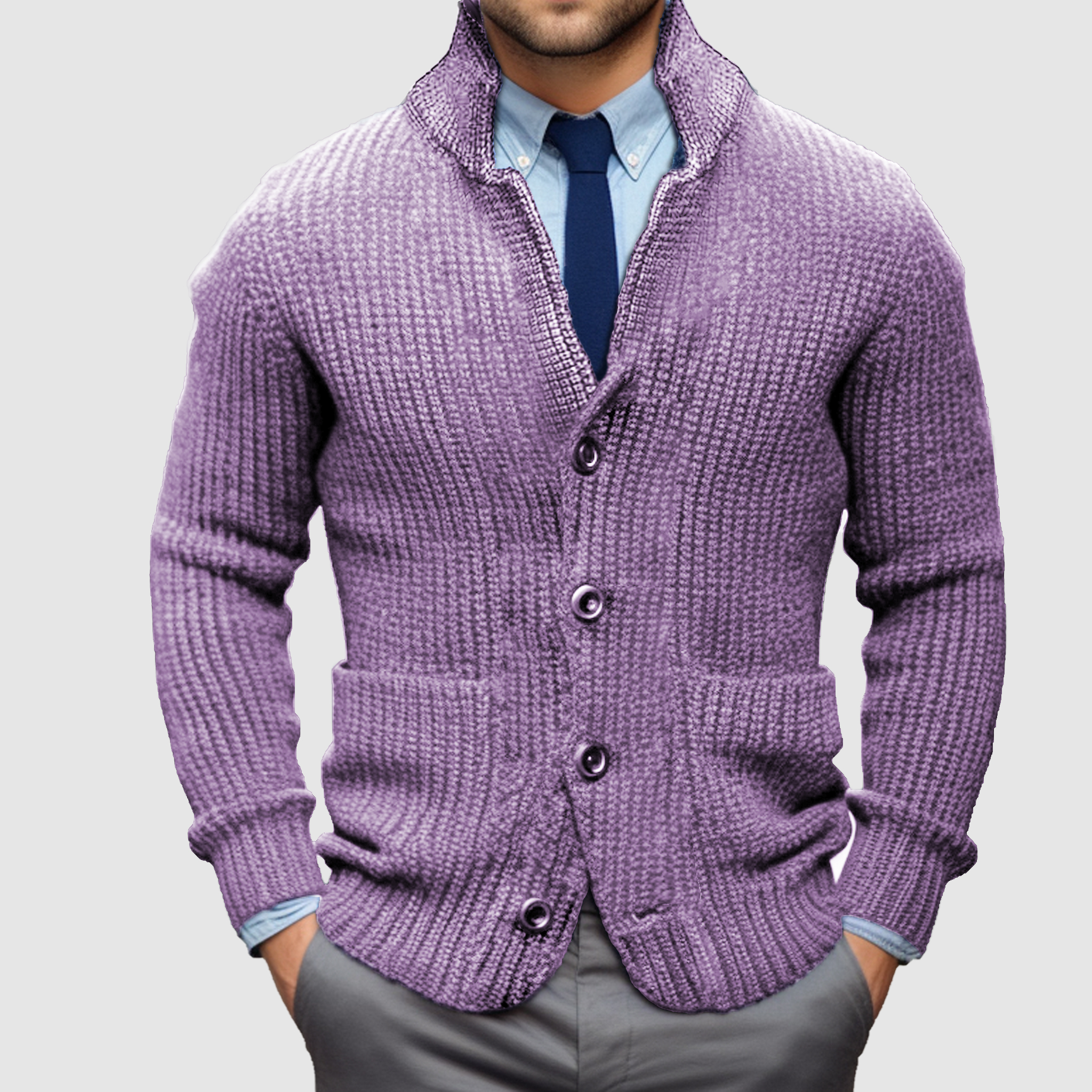 Men's Long Sleeve Stand Collar Thickened Cardigan Warm Casual Jacket